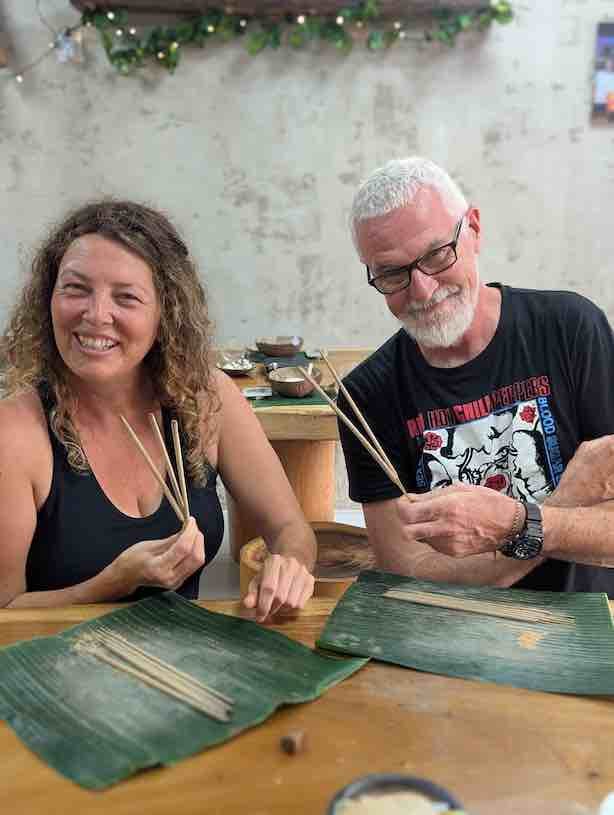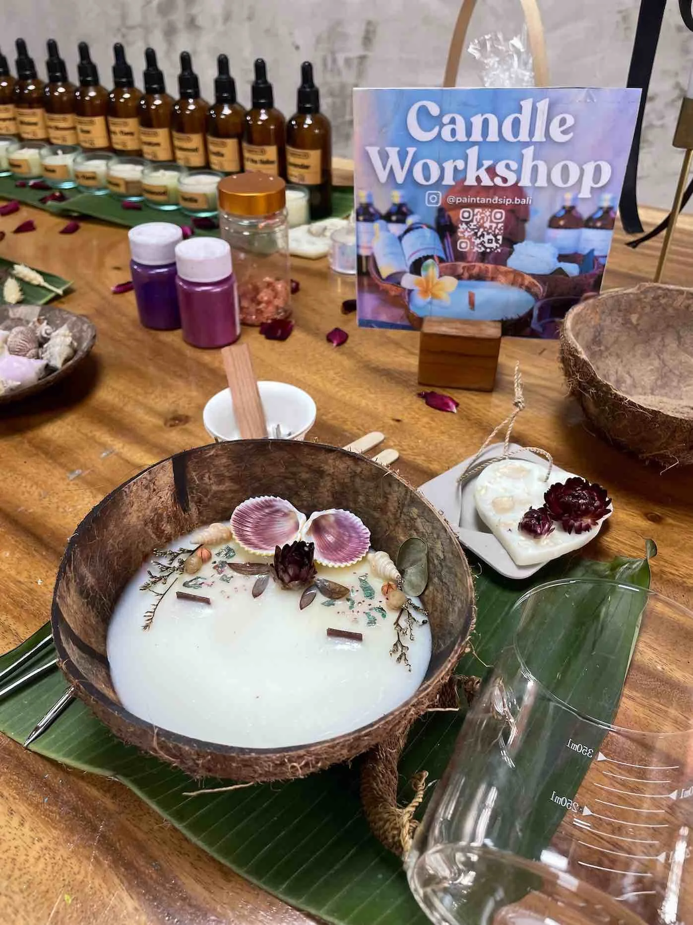 Coconut wax, Coconut shell, Coconut Water! Learn to create your own natural candle and fragrance sachet, then decorate it with dried flowers from Bali.