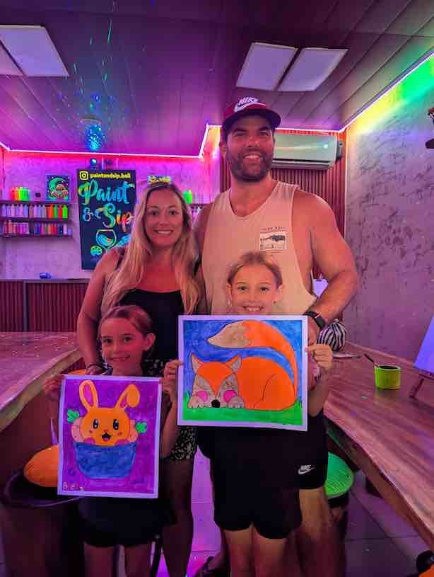 Ready for an unforgettable painting experience in Bali? Experience the magic of painting with Neon Colors under Blacklights. You can Paint & Sip, or just Paint & Chill, it’s up to you!