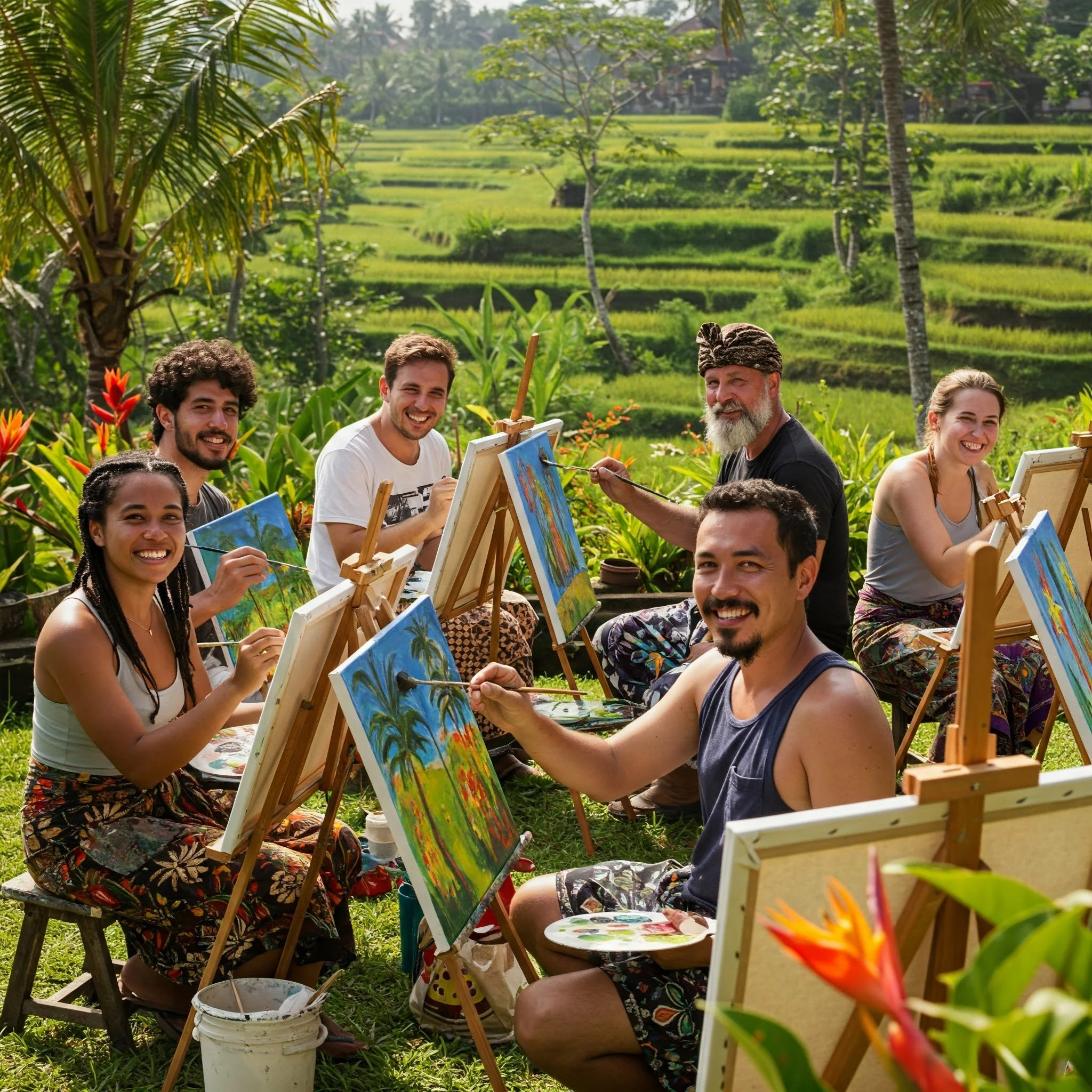 Paint & Sip Ubud Art Workshop & Studio offers fun and engaging painting classes and workshops in the heart of Ubud, Bali. It's the perfect activity in Ubud for individuals, couples on a date night, or groups looking for a creative experience. Our painting class provides a relaxed and social atmosphere where you can unleash your inner artist, even if you've never painted before! We cater to various occasions, from casual get-togethers to special events like bachelorette parties and private parties. Looking for a unique after dinner or night activity? Join us for a memorable artistic adventure!
