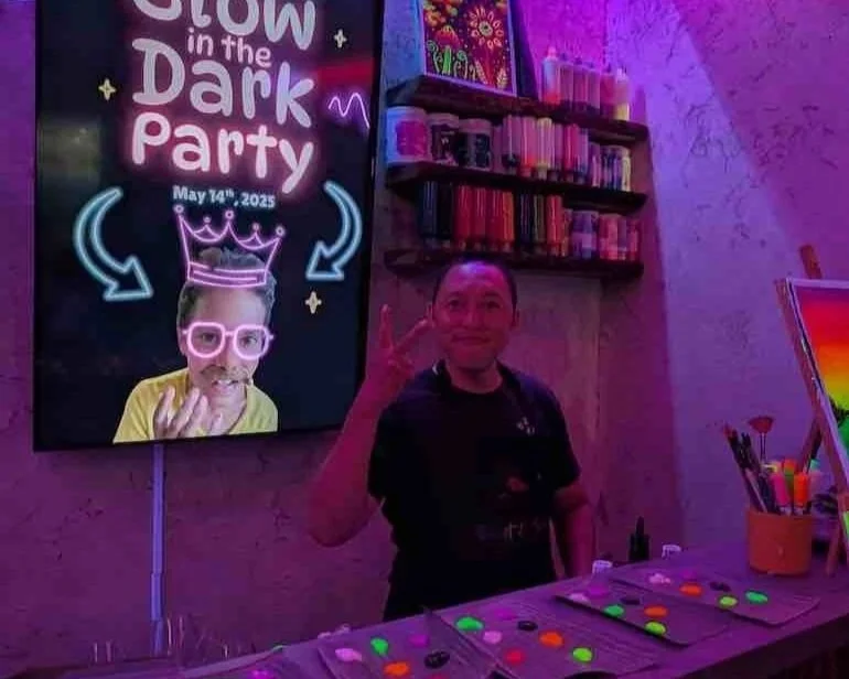 This isn't your average art class – imagine painting under blacklights, where every brushstroke comes alive with luminous color.