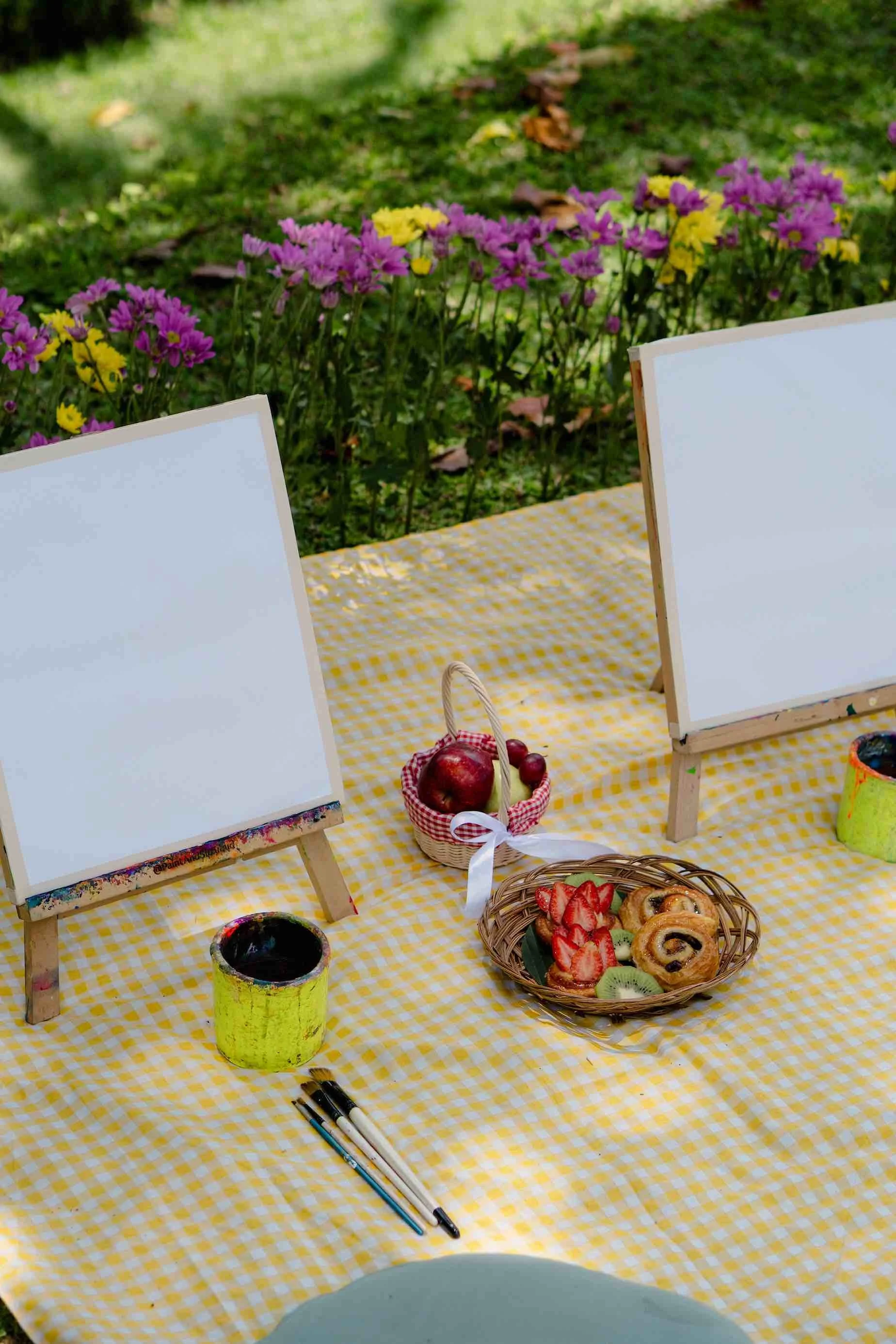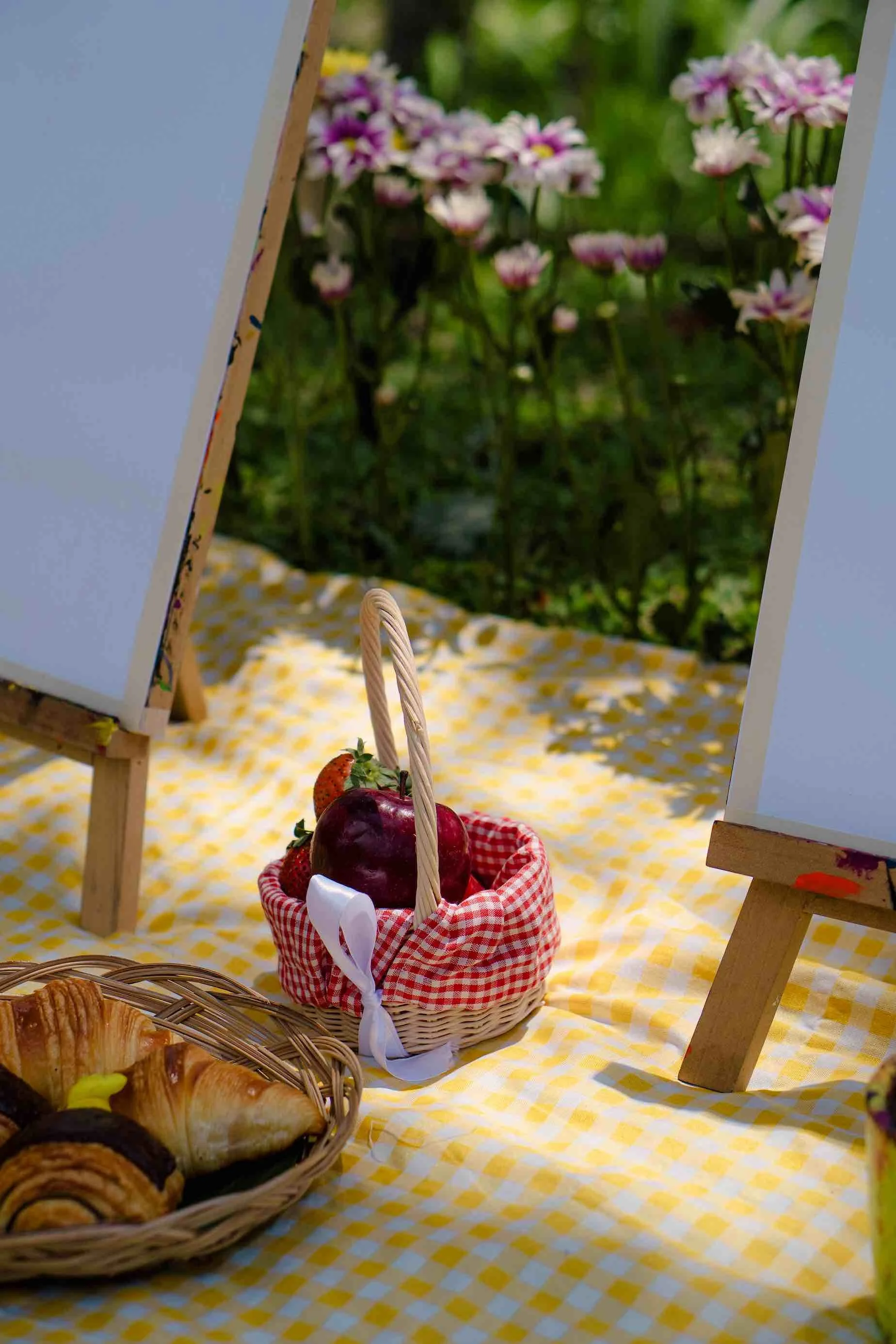 🧺 Soft picnic blanket, gourmet snacks, and refreshments.