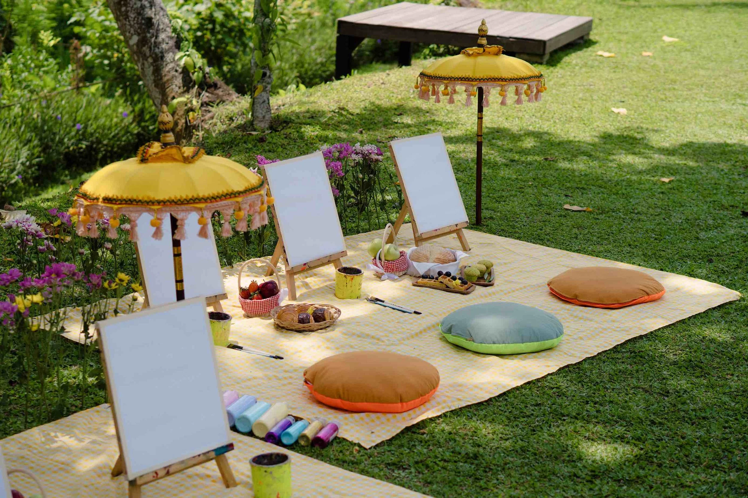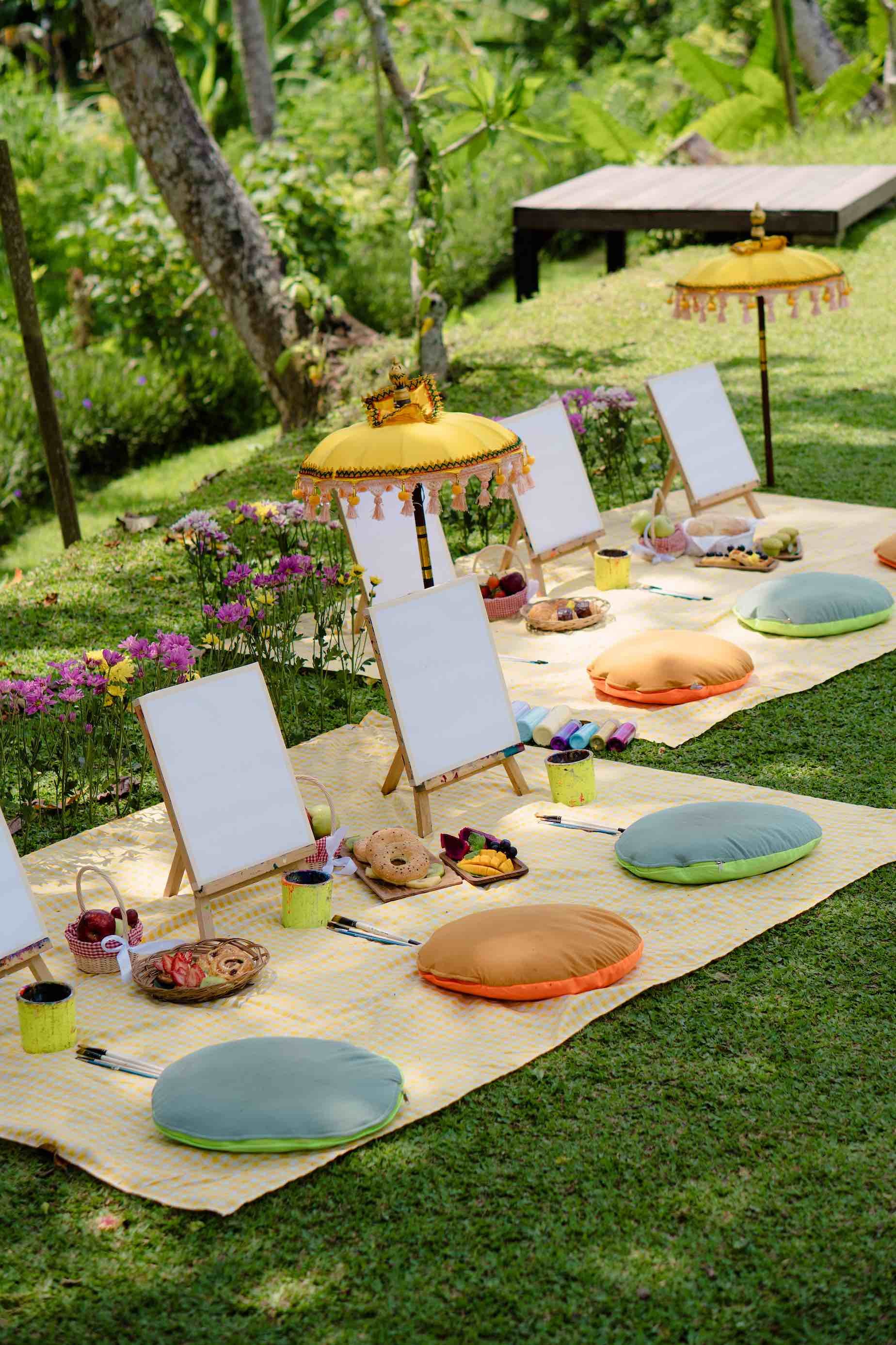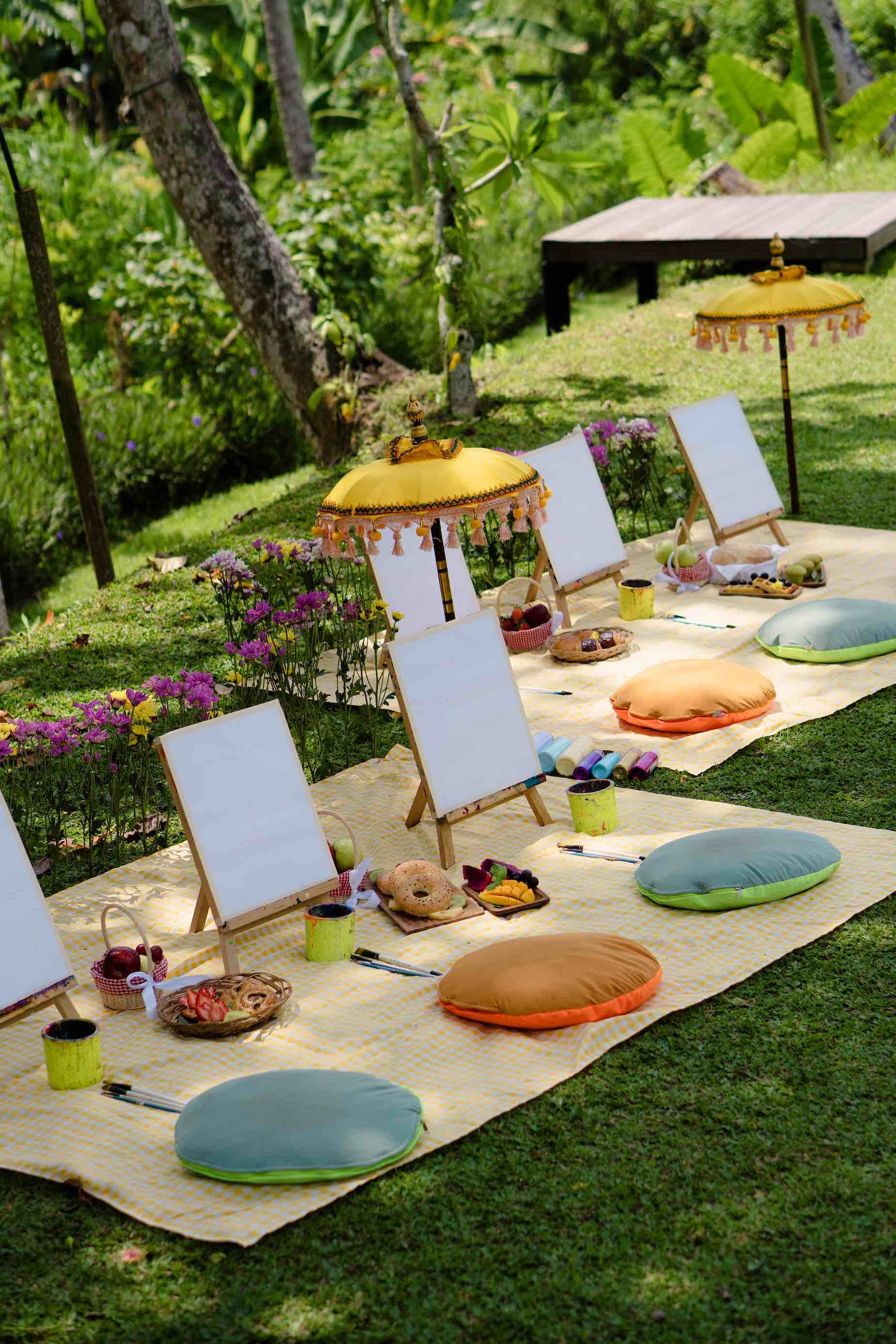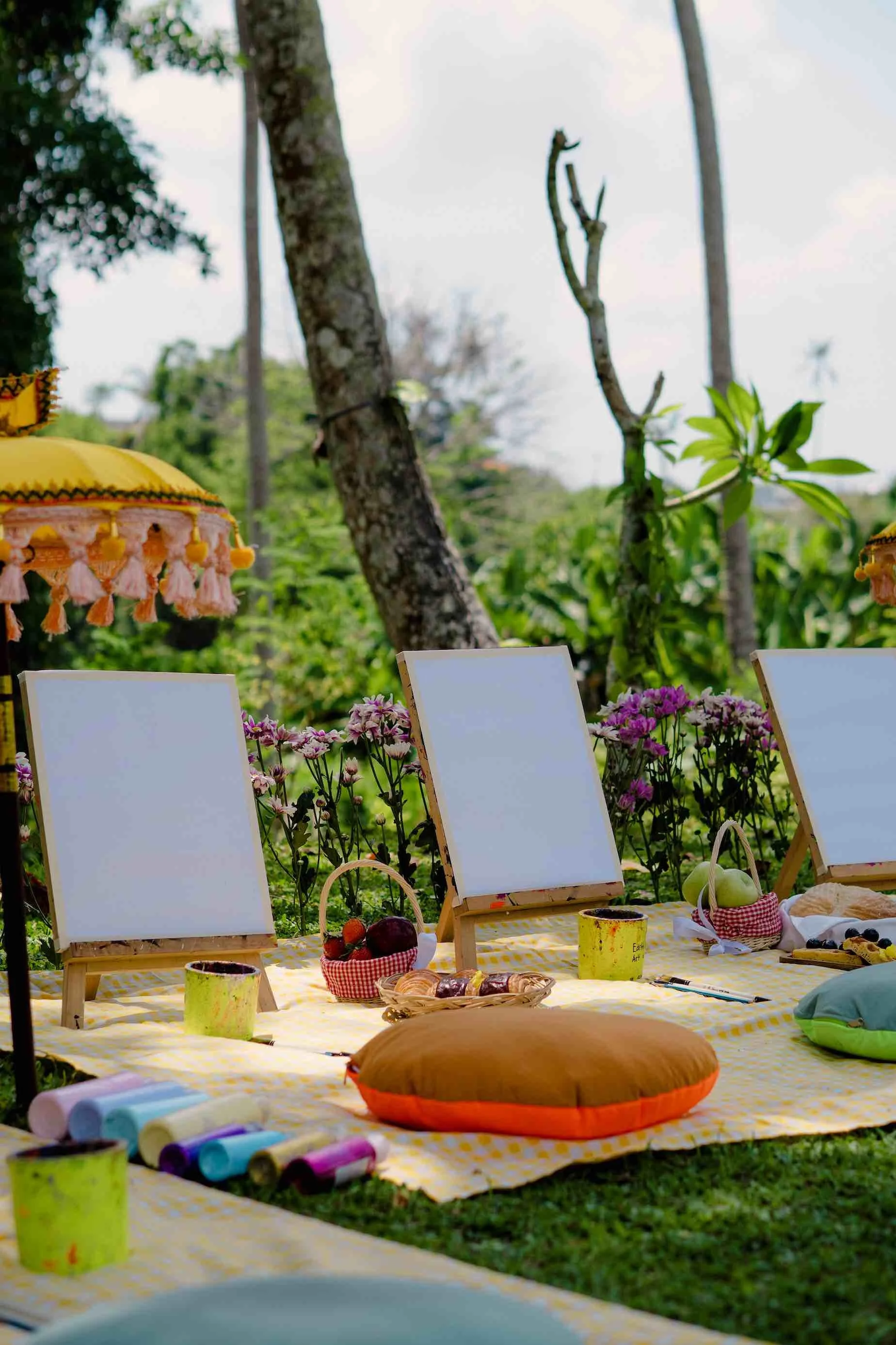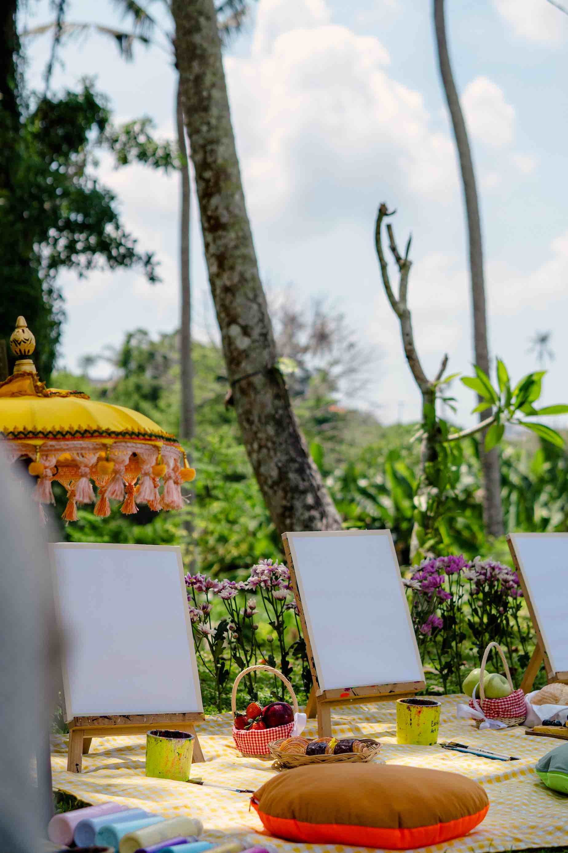 In the gentle calm of Ubud, inspiration finds its natural rhythm. Enjoy a blissful paint and sip session outdoors, settled comfortably on a soft picnic blanket in a gorgeous, natural location.